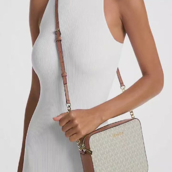 MICHAEL KORS Grand sac à bandoulière Jet Set à imprimé à logo Beige